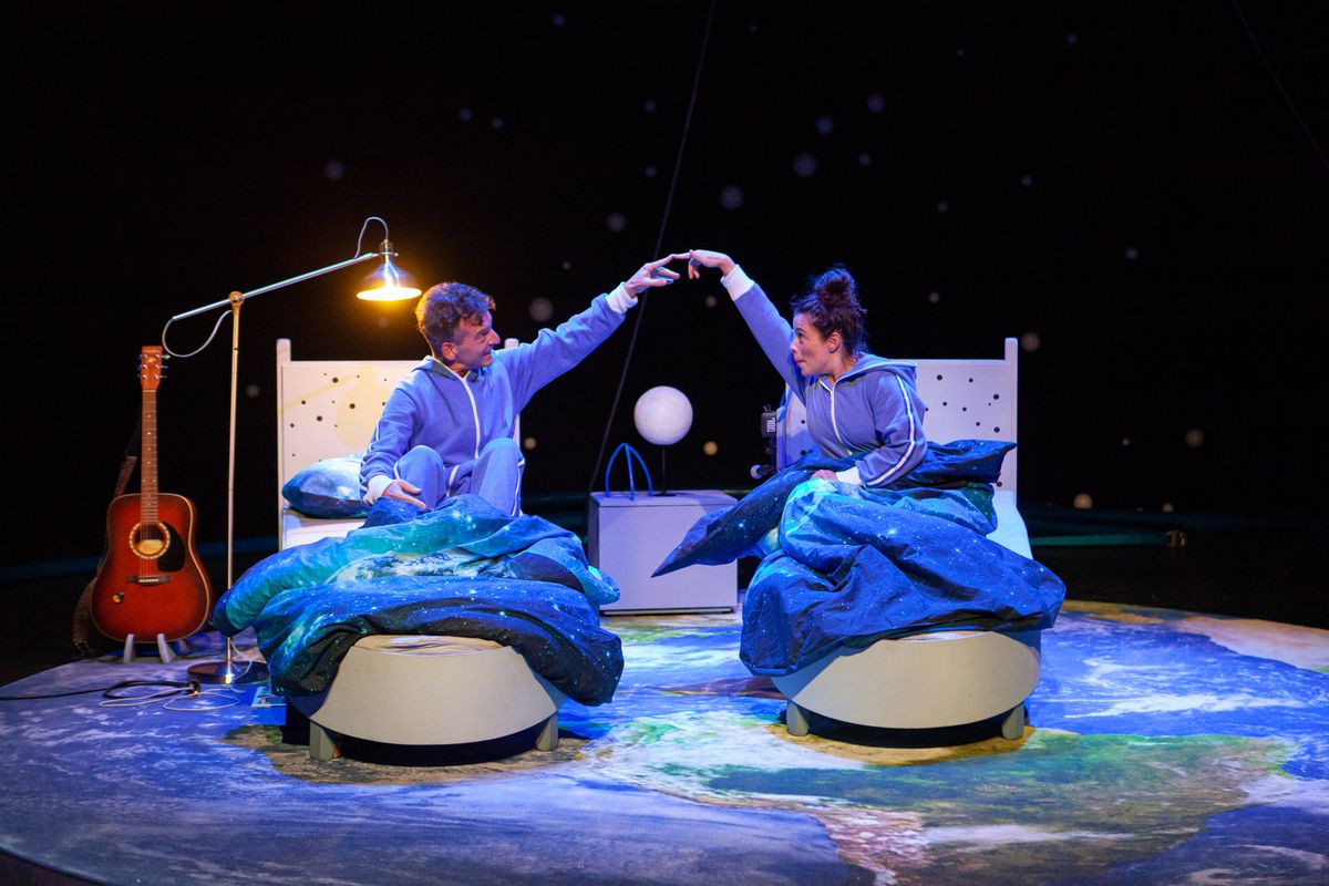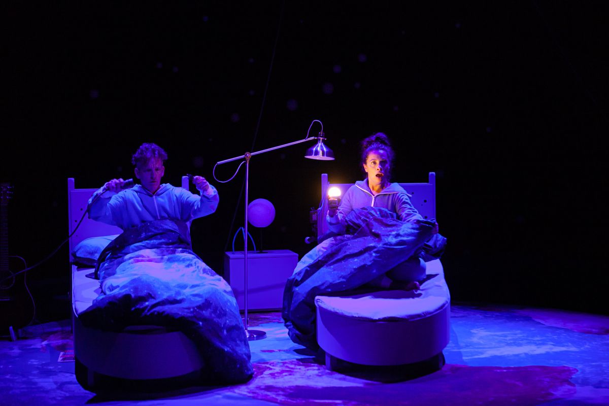 Het mooie aan deze voorstelling van schrijver Sanne Schuhmacher en regisseur Lennart Monaster is dat ze werkt op verschillende niveaus. Voor de allerkleinsten is er herkenbare slapstick in en om het kinderbed…..Voor de wat oudere broers of zussen is er het verhaal.